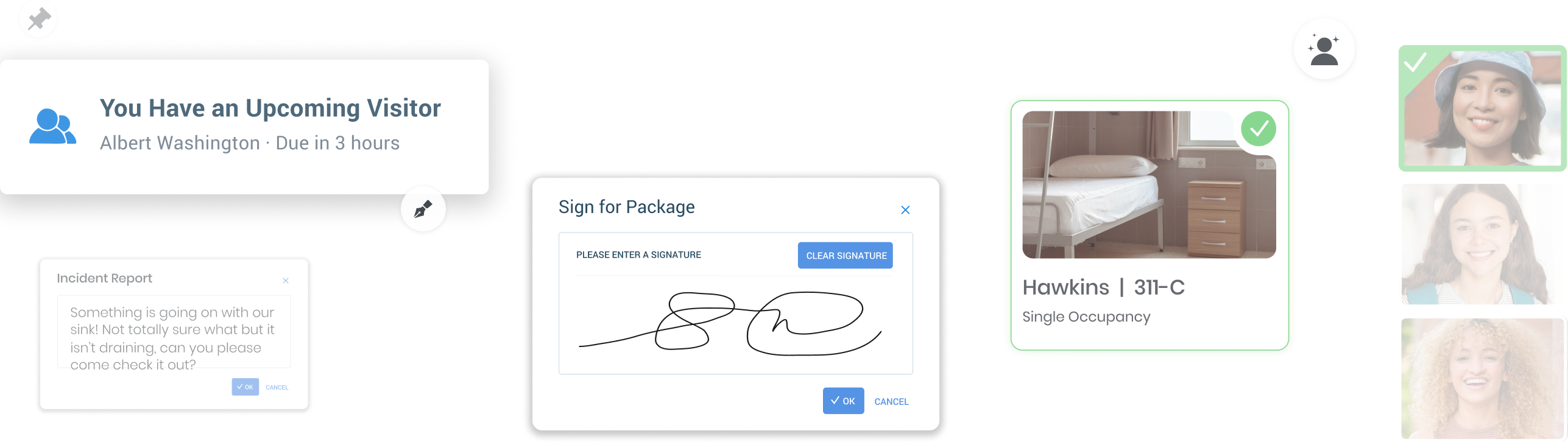 Simplify inspections, maintenance, and package tracking with AI-powered, mobile-friendly tools that boost efficiency and visibility. From room condition reports and automated work order management to package tracking, your teams and residents stay connected, proactive, and in control at every step.